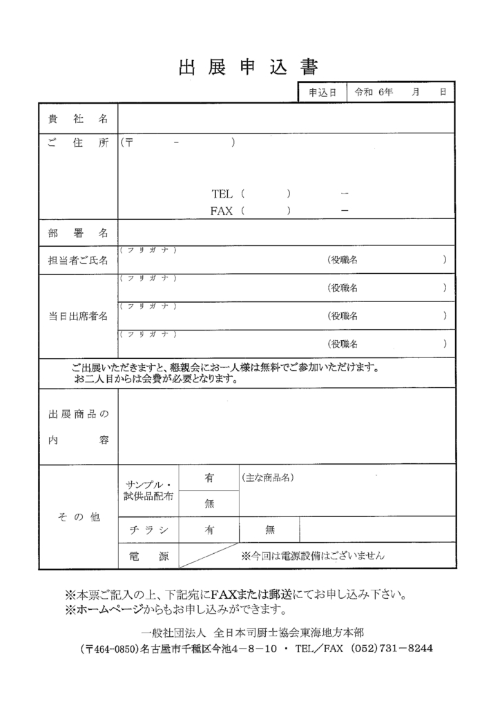 東海地方本部 令和6年度 第14回定時社員総会 商品展示ブースの申込みフォームです