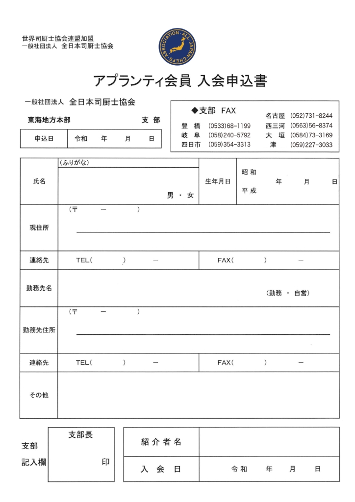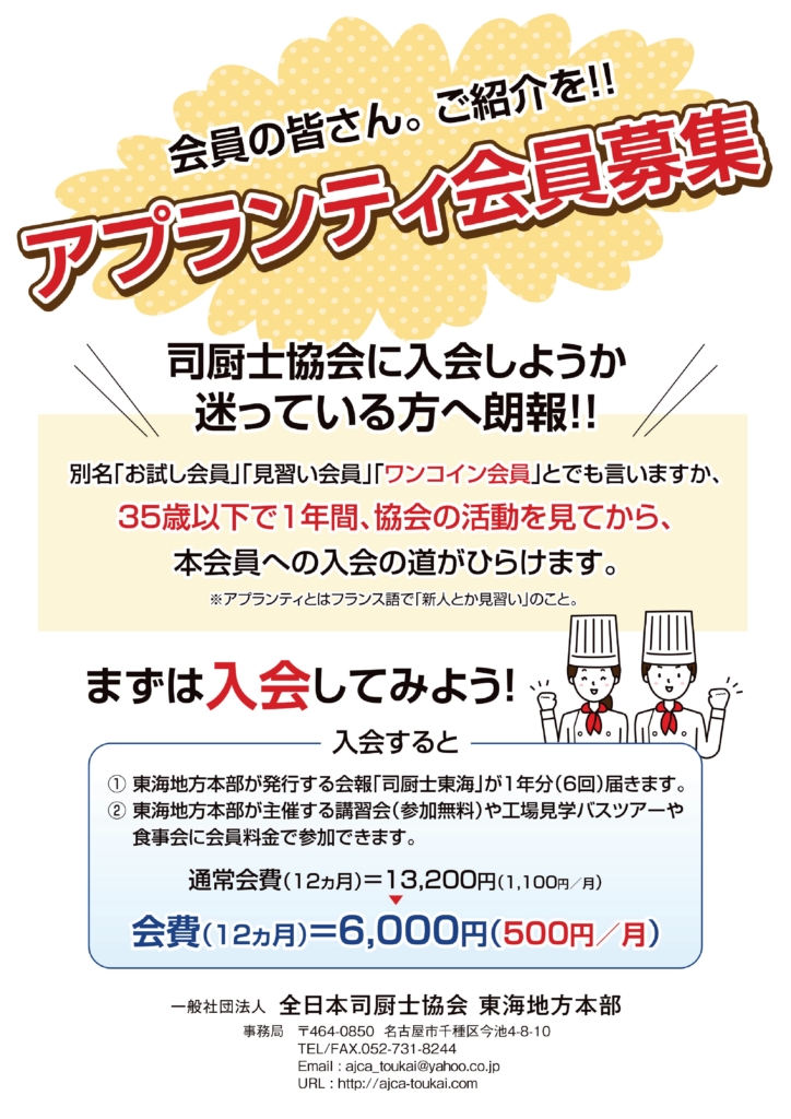 司厨士協会・東海地方本部では、